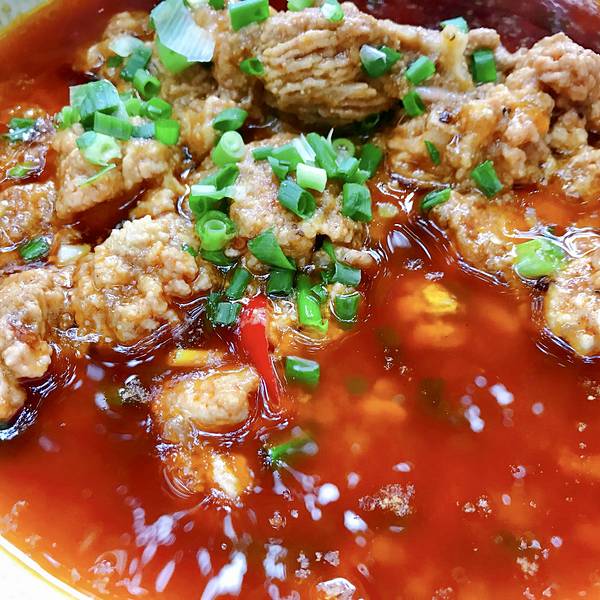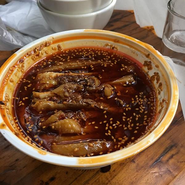除了蹄花汤不辣,其他都超辣,非常local!脑花很不错,很嫩,很够味,而且没有任何处理的不到位的地方。强烈建议大家点一份蹄花汤,因为当地吃的满嘴辣的受不了的时候,蹄花汤可以帮你解辣的。
