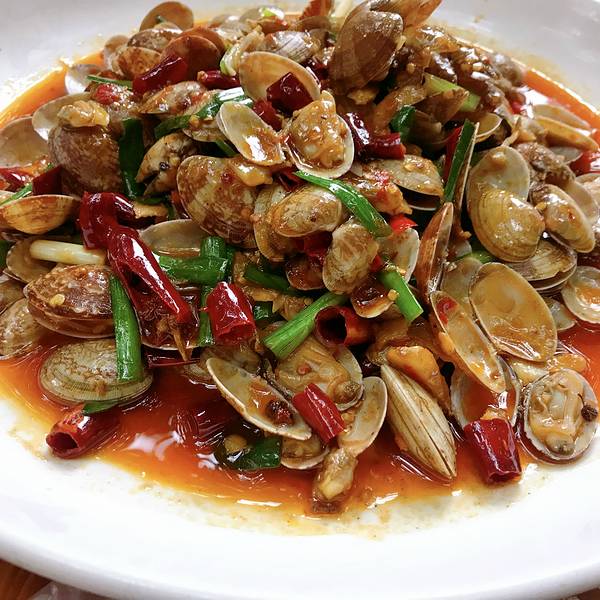 哪里都是他家的顾客爆炒花甲花甲炒得特别好甜辣甜辣的