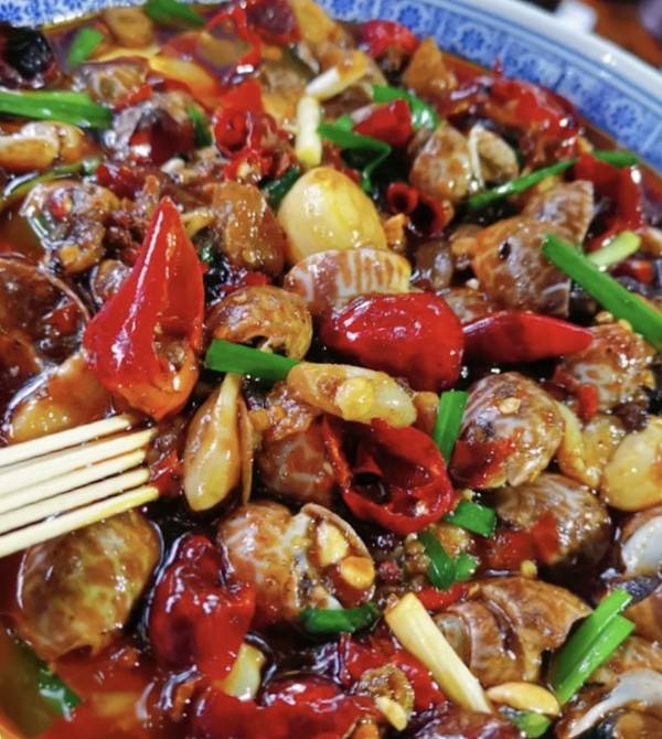 - 成都朋友极力推荐的田螺真的绝了!那个肉一坨一坨的,满足的不得了!肥肠也太巴士