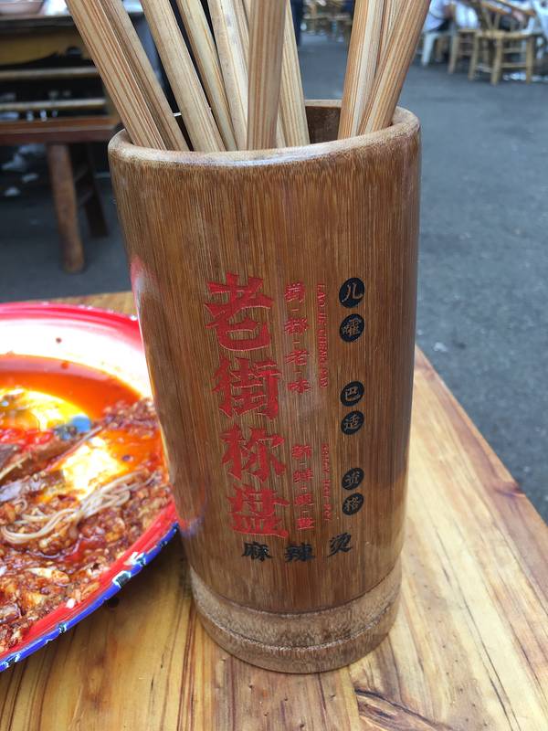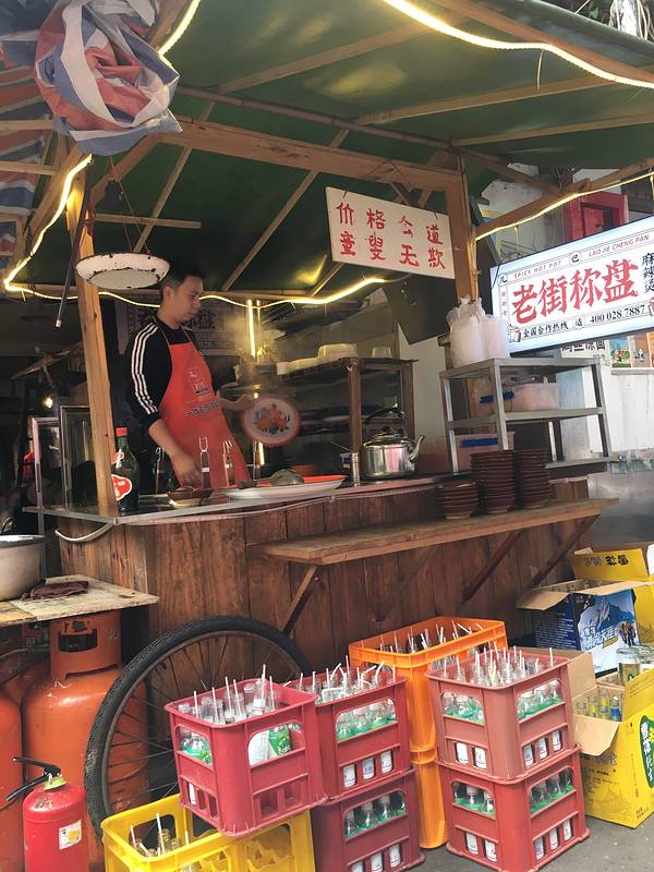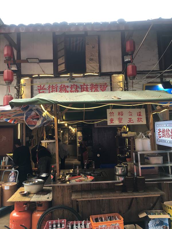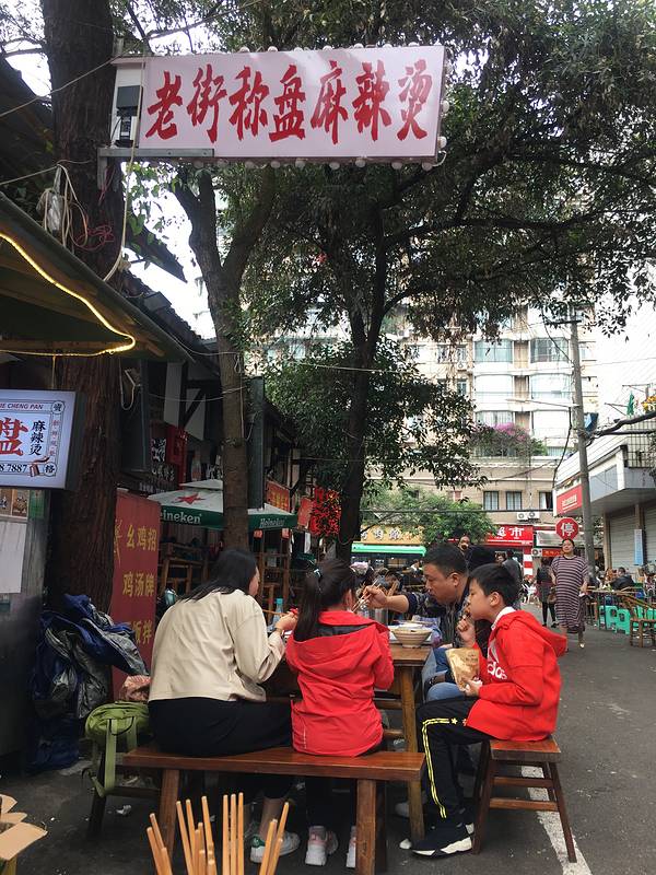老街秤盘麻辣烫:很有情怀的小店,大大秤盘就是盛菜的容器,店家也是费劲心思想让大家吃到曾经的年代感。店里的装饰和摆设,无一不透露着老 成都 的味道,虽然是破旧的样子,却挡不住大家的喜欢,一来这里总还是要举起手机来几张照片。自己挑选菜品,店家统一煮,依次分发号码牌,饭点的时候生意好到不行。菜上桌后卖相非常好,除了底料,还会放上店家秘制红油和辣椒,再撒上点香菜和葱花,看着就相当诱人。朋友说这里虽然不是多惊艳的口味,却是一种让人怀念的味道,吃了会让人怀念过去,想起无忧无虑的小时候。