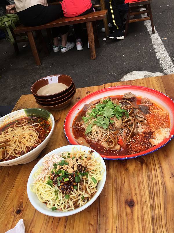 因为想吃鸡丝凉面,所以就跑到这边来试试看,一条不长的老街,都是用自己家里房子改的门面,来吃东西也是以当地人为主,反正你该吃吃你的,大爷大妈该搓麻将的还是搓她的麻,相互不影响。这家店也点啦,一大盆上来,味道没有啥惊艳的,反正中规中矩吧。我们家LG点的,忘记叫啥啦,还可以。反正两个人吃撑啦,才几十块钱,品种还是蛮多的,那个鸡丝凉面真的份量足,没有吃完。然后麻辣烫是可以免费配米饭的