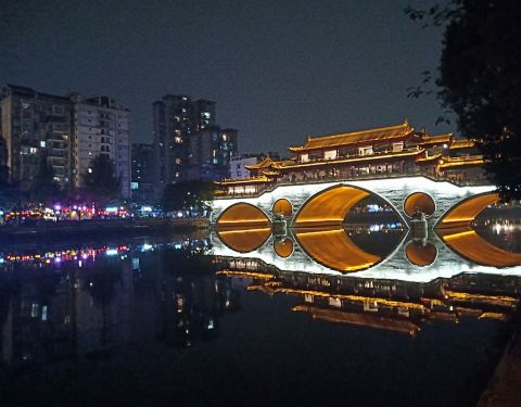 这个地方真的太赞了。晚上夜景很美,看图就知道啦。桥的对面就是传说中的酒吧一条街,因为一个人去的,就没敢去酒吧,不过好多都是清吧,问题不大。如果和朋友一起去的话找个酒吧进去玩玩也是不错的。我一个人就只是在周围转了转,听听民谣,感受一下成都晚上的悠闲生活氛围~