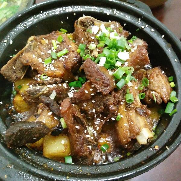 三鲜肉片、大排骨也是很推荐的,大排骨下面的土豆由于油的作用,轻微焦糊,吃起来很香很入味