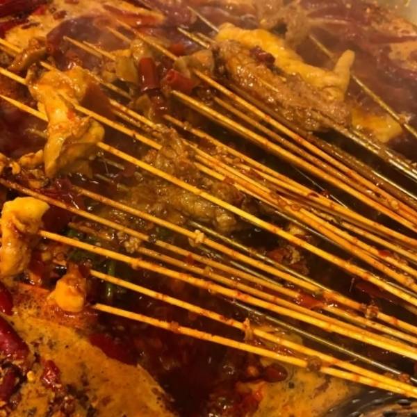 成都串串自然少不了久负盛名的山城风串串王。以食材的新鲜和鲜辣的底料而闻名。门外经常大排长龙,特色兔腰和各种肉类串串都是必点菜品。