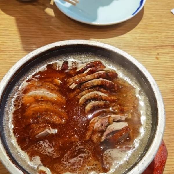 味道很不错。没有预约位置,到的时候很幸运的是最后一桌。茄子皮蛋煲太适合下饭了冒烤鸭也是风味十足
