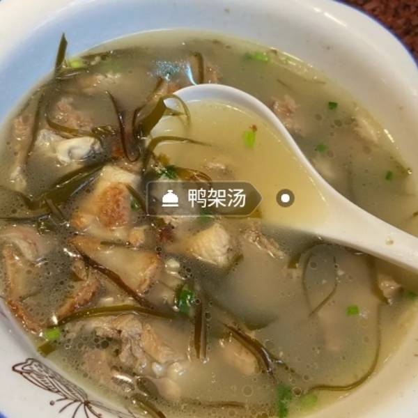 鸭架汤挺鲜,就是冬天冷得快,服务员后来给我们加热一下,喝起来巴适。