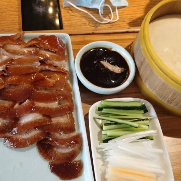 有一种满足只有张烤鸭可以给予有一种满足只有张烤鸭可以给予2021年第二天张烤鸭安排 片皮鸭快落的源泉,面皮超好吃,有保温,甜面酱超级赞,片皮鸭皮和肉相连,吃多不怕腻,每次都点,吃完还想吃的那种。