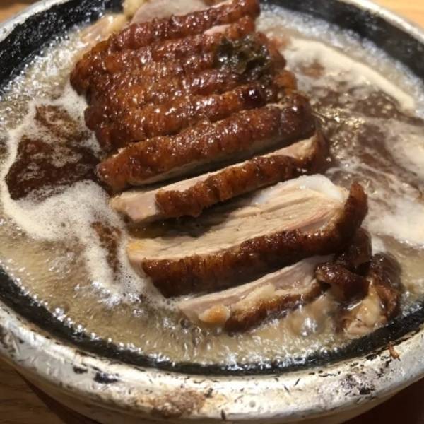 味道很不错。没有预约位置,到的时候很幸运的是最后一桌。茄子皮蛋煲太适合下饭了冒烤鸭也是风味十足。片皮鸭也是师傅来面前片,