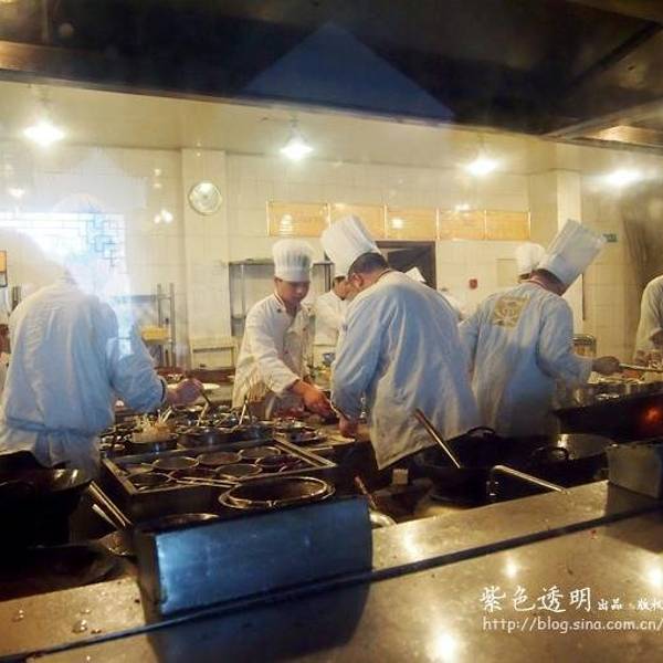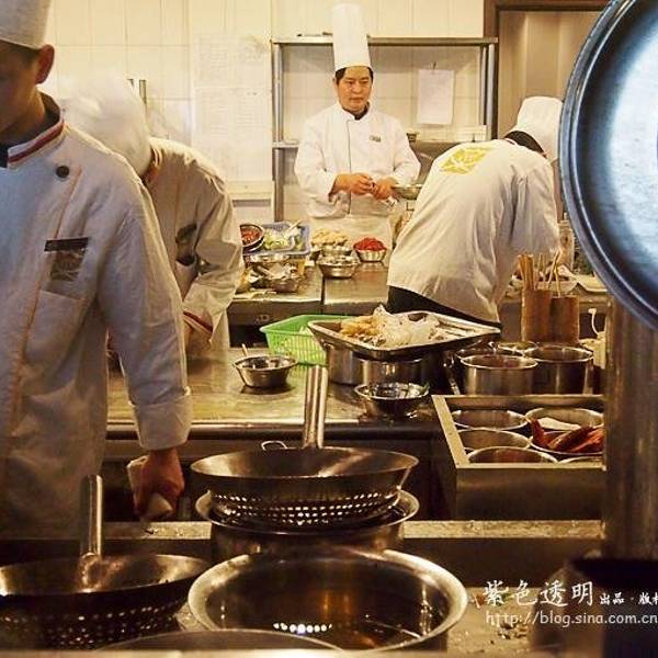 在川菜博物馆里面不是只有展览展示,还有正宗的川菜和听戏的园子,让人好不惬意。了解完川菜历史,在这里来上有个正宗的川菜,饭后再在院子里散散步,喂喂鱼,喝喝茶,听听戏,还有什么比这更闲适的生活呢。 参观完川菜典藏区,正巧中午用餐时间,我们踱步来到餐厅。这里的后厨和餐厅是用一整面玻璃隔开的,可以在餐厅内清晰的看到大厨们辛苦的颠着锅,掌着勺。