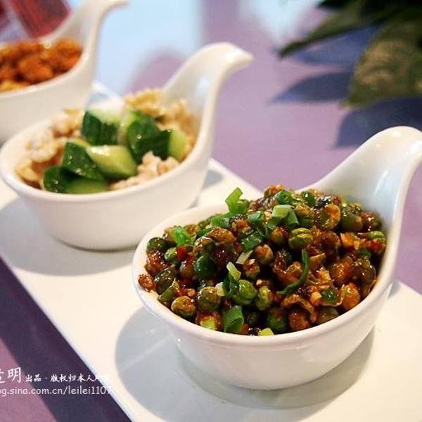 这个重点推荐,椒麻鸡,超好吃,我特别喜欢这道菜。鸡肉嫩而不柴,入味得当。最后是花生,跟怪味豆做法类似