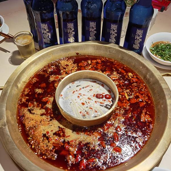 成都火锅偏麻辣 红油锅底+香油碟啊 好吃到爆啊啊 !分量不少 性价比还行 比重庆火锅稍微贵一点