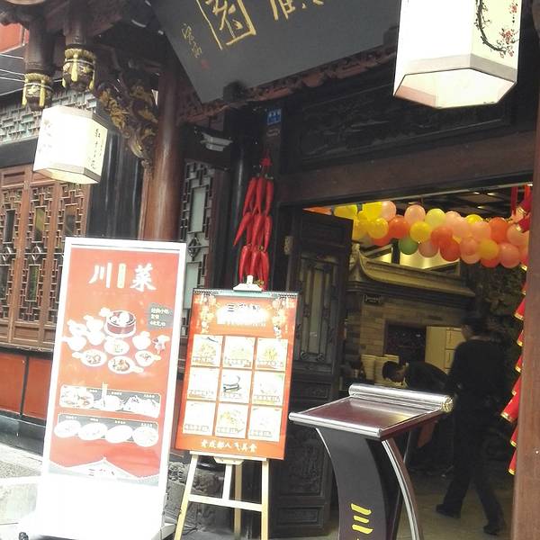 就“在锦里的入口处右边”。主打川菜,菜名“全部取自三国”,读起来“很有意思”,吃口“不重”,适合来成…