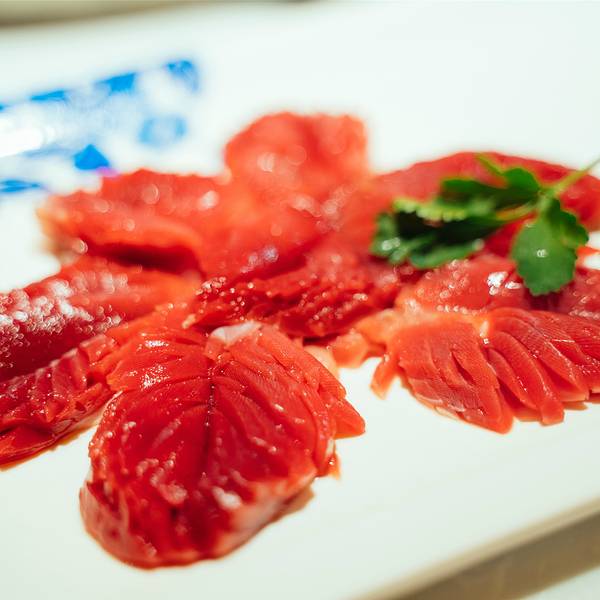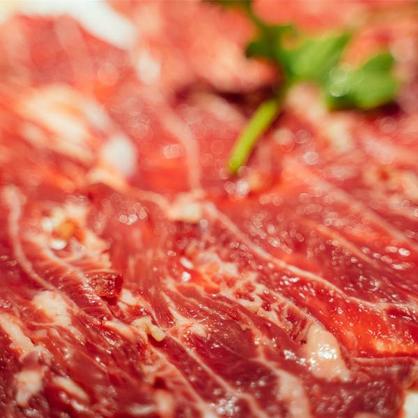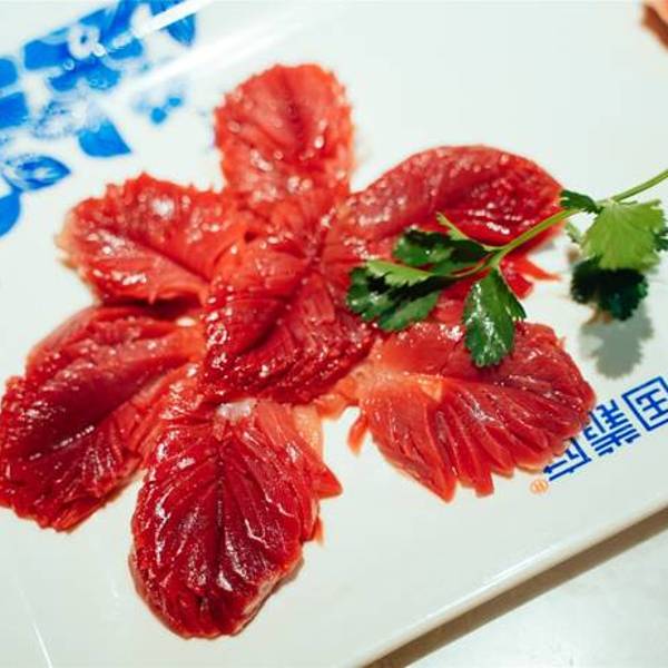 - ...上来好大一盘鲜切牛肉,牛肉的质量特别的好,既有瘦肉,也有脂肪,切的很薄很大一片,口感很嫩而紧致