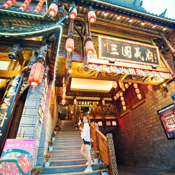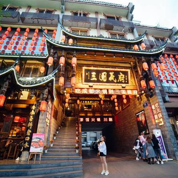 在武侯祠的旁边,步行几分钟即到,而且离锦里也很近。在这里吃完,逛逛锦里正好可以消食。这家店的火锅是重庆味道,其包房的名字都是重庆特色,比如什么解放碑之类的名字。因此与成都火锅味道还是不大一样的。重...