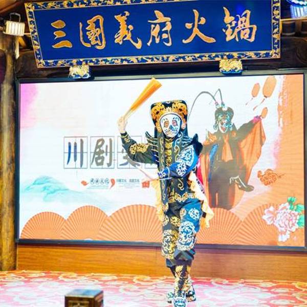 地址:武侯祠大街113号附1号(锦里,太成宾馆旁边) 价位:¥95/人 位置特别好找,是一家有川剧表演的火锅店,仿古的建筑风格,很是气派~(内部的设计也非常古香古色,有种古代客栈的感觉) 舞台大厅人就比较多了,来的比较早,没有排多久的队,而且非常幸运位置正对舞台~~认真给我奶奶录了几段,我没看太懂他们演什么.不过,变脸表演真的很精彩!在美女服务员的推荐下点了三格锅,记得好像叫桃园三结义,辣锅真的超级辣,超出我想象,满口腔都是辣味,但是辣味淡去后又令人回味无穷忍不住继续夹菜放进去..番茄锅口味偏甜,和海底捞的番茄锅有点像,火锅业余爱好者的我吃不太出差别..原味锅很清淡,我以为在川渝地区是见不辣锅以外的锅了!还蛮惊喜的!推荐五花肉,辣牛肉和毛肚!牛肉很嫩,虽然很辣,但是很过瘾啊,毛肚不用介绍了,没有毛肚的火锅是没有灵魂的!总之,作为一个不太能吃辣的火锅爱好者,三国义府完全满足了我的需求,给我全新的火锅体验,每个食材的品质都很高!服务生的态度也超棒,辣的很过瘾也不至于过度~超级推荐!!!