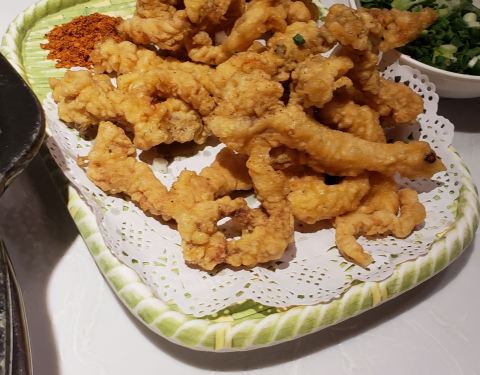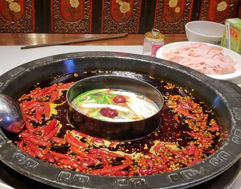 东北人吃川锅,一如既往的就是鸳鸯锅。辣锅涮内脏,清汤锅涮菜 不得不说的店里的食材还是很新鲜的,鸭肠,黄喉都很新鲜,只要掌握好火候还真的是挺好吃的 黄鳝也不错。 店里的酥肉炸的火候和味道只能给三星,感觉不够椒麻。这个如果能改善就更好了。 这次在成都没有点涮品肉类,所以店里的肉怎么样不做评价了