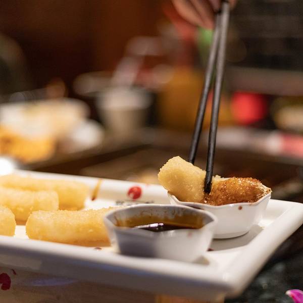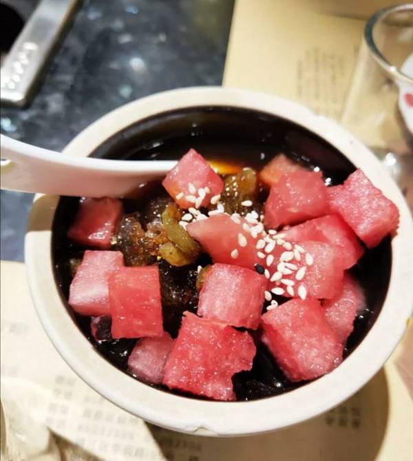 红糖糍粑:四川火锅的小吃标配,不过锦城印象的红糖真的给得十足,自己可以把糖汁和豆粉裹得满满的,然后一口咬下去,真的不要太好吃哦!第一次吃四川麻辣火锅的人,想必都会被它的氛围所征服吧:红、火、麻辣、鲜香,各色菜品相继下锅,在热滚滚的汤里涮几下,吸满了汤汁香味的菜配合裹着特有的麻油蘸碟,吃在嘴里,两个字:满足!最后,必须手动点赞一下锦城印象的服务,简直贴心到不行,可以说是遇到过最nice的火锅店了,大家有时间一定来尝尝