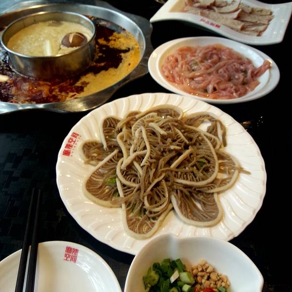 - 特别喜欢酱料,餐点了鹅肠,春意黯然(里脊),麻辣牛肉,千层肚,藕片,还有个青菜,那四个肉都很赞...实用