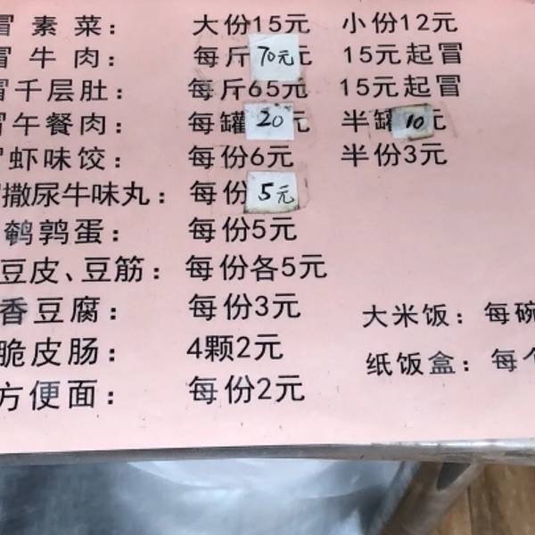 每天上午10点左右到下午2点排队购买,素菜大份和小份在15左右,冒牛肉按重量算,首选菜品,早上7点多就看到他们在洗菜,摘菜了,买的时候,有一个师傅现场专门给你调味道,有辣的,一般辣,微辣,还可以比微辣还不辣点(因为实在有点辣),可以在那里吃,也可以打包带走,晚上吃就把菜品和汤汁分开打包,回去按照老板教的方法自己煮
