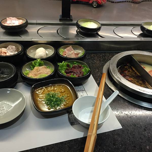 算是成都最高档的火锅店了。装修很上档次,既彰显了老成都文化,又兼顾了现代感。餐厅不时的还有川剧表演,即传扬了成都文化也让食客很尽兴。找个地方坐下,一圈传送带会把菜源源不断的运出来,喜欢吃什么可以拿什么,个性化的就餐,氛围轻松自由。店内锅底的白汤很鲜美,是用鱼骨熬制而成的,富有营养。菜品都很新鲜,主推老妈牛肉,毛肚等。
