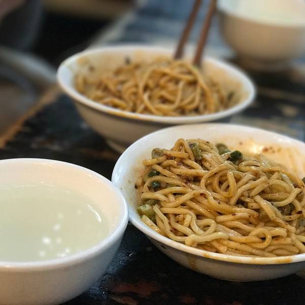 第二天一早我们滴着去了纯阳面馆,这家是我从B站常乐的视频里挖来的(也不知道你们有没有认识常乐的,他是加拿大人喔) 接下来的第三天第四天我们都是锲而不舍的滴去这家吃早饭,为什么?因为太特么好吃了。