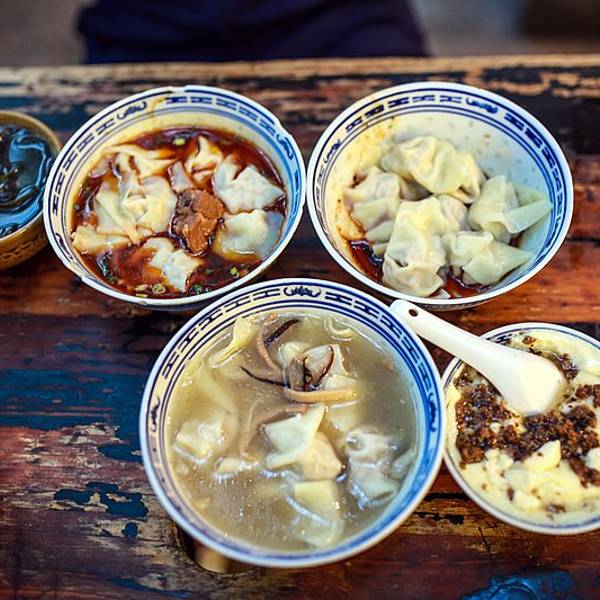 最寻常街巷的老店面,老旧的方桌子,盛抄手的青花碗,都充满着生活的气息。