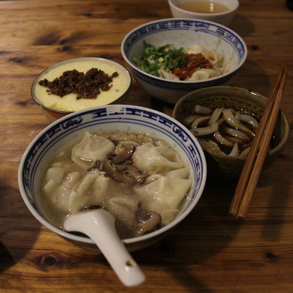 最寻常街巷的老店面,老旧的方桌子,盛抄手的青花碗,都充满着生活的气息。 听闻,如果中午去吃,要排大队,只能拼桌。虽然招牌上的鱼香排骨面味道也不错,但我更喜欢它家的抄手。 以配面的哨子配抄手,馅儿都是鲜肉口菇的,红油抄手入味儿深,吃起来很带劲,豇豆抄手很美味,泡过的豇豆炒上肉臊子,配上红油、香葱等干拌吃,很多人都爱。 把每种味道的抄手都吃了一遍 我最爱红油的,老公柯柯最爱海味抄手 不想吃面但是想吃鱼香味的,可以来一碗,鱼香肉丝抄手 对了,一定要搭配一碗海带汤和蒸蛋,这一顿才完整~