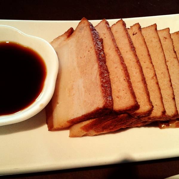 晚上跟朋友四人的,比较吵,人较多,大概也是这个原因,点菜、上菜、结账、找钱的速度都比较慢。我跟朋友开始还自带了鸡翅膀去吃,结果被服务员礼貌制止了,果然是全素的店,千万注意了这里“无烟无酒无肉”啊。之前听很多人说太油腻而且偏甜,我不知道是不是我们点的菜的过,我不觉得很甜,油腻还好,大概入川随俗了吧。而且每份真的比我想像中还袖珍地多,要不是之前跟朋友吃了很多东西,不然一定不够。其实就是把素菜做得跟荤菜的口感一样,看见还有和尚来这里吃饭,其实不也是解吃不了肉的饥渴么…… 枣子冻:较失望很一般,就是枣子味的果冻,而且味道还很淡。 糖醋香酥排:这个一定赞一个,卖相很好,吃起来酸酸甜甜的,我跟朋友都很喜欢。 开胃酸辣粉:很失望,酸得很奇怪,辣也很奇怪,而且2、30元,外面4元一碗的都比它好吃。 黑椒素排:这个真的很神奇,我怎么吃都觉得它就是肉,到底怎么弄出来的?!而且味道也很好,赞! 黔香素干锅:这个很川化了,里面的“肉”也一吃就知道不是肉,就是一锅杂的菜,油多,吃这个不如去外面吃干锅,划算得多。 长相思:就是我们平时熏肉的味道。 青豆山药泥:最爱,获得了大家一致好评,清爽的口感非常开胃,回味至今。