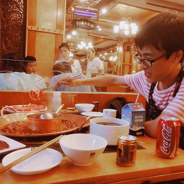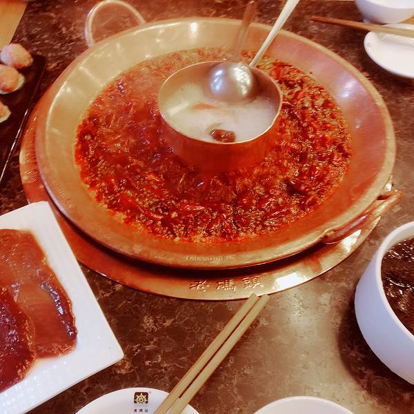 来成都之前在网上已查了好多攻略,针对四川火锅,推荐比较多的就是这个老码头,还有一个蜀九香。气派的大铜锅,长长的筷子,翻滚的红油,为慕名而来的人营造了满满的氛围感。由于在附近看的电影,所以直接百度地图导航过来了。服务态度好,菜品干净新鲜,人气爆棚不说,还有很多食客都是本地人。