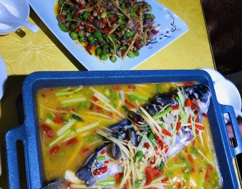 ...姜和米辣的辛香将花鲢的鲜味提升到极致入口即化椒香脆条居然是用油烫熟的牛舌,那个脆弹麻辣让人难忘