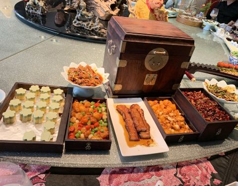 服务及时周到,热情好评。春华秋实这个菜是用巧克力粉做的,有点像土比较有创意。毛笔酥这个就跟一点东西好吃脆脆的。有机会再请我的朋友去吃。