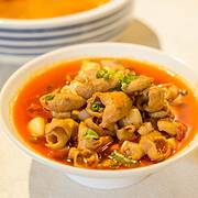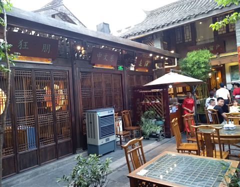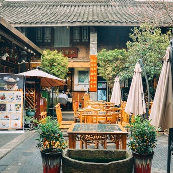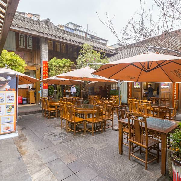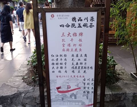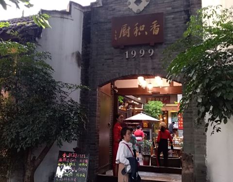 成都香积厨1999(宽巷子店)位于宽窄巷子里的宽巷子18号,有一个古香古香的门庭和比较宽敞明亮的院子,二旁则是包厢。而其特色则是精品川菜以及四合院盖碗茶。