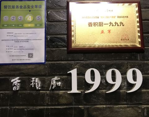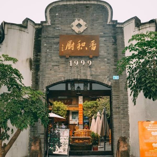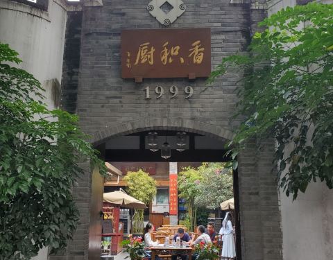 每一个来成都的游人,都会尝尝这里的火锅,它传递的似乎远不止是美味,而是一种情感。但是我想说,成都的美食比比皆是,可不能只是吊死在火锅上。很久前就被朋友安利了香积厨1999,此次成都之旅,果真带给了我不...每一个来成都的游人,都会尝尝这里的火锅,它传递的似乎远不止是美味,而是一种情感。但是我想说,成都的美食比比皆是,可不能只是吊死在火锅上。很久前就被朋友安利了香积厨1999,此次成都之旅,果真带给了我不一样的味蕾体验。香积厨1999在成都的分店众多,我此次前往的是宽巷子店,在领略完淳朴的老成都风貌后,再来品尝地道的川西风味,当真是极好的。初见香积厨1999,便被古朴的外观所吸引,高高的门头由青砖堆砌而成,一块精致的牌坊遗世而独立,“香积厨”三个大字映入眼帘,上方刻有1999,将餐厅的故事娓娓道来。门前矗立着两颗青松,郁郁葱葱,呈现出欣欣向荣之景。餐厅的门窗采用开放式,站在店外,透过精致的木窗棂,便能看到客人用餐的情景。走进餐厅,偌大的庭院开阔了我的视野,古老的青石板整齐而有序,仿佛走进了一个大户人家。庭院内设有古色古香的桌椅,大大的太阳伞上画有宽窄巷子的标志,将传统的川西风情一览无遗。桌椅旁摆放着些许盆景,尽情释放氧气,为用餐提供清新的环境。餐厅内菜色齐全,除了香辣诱人的川菜,这里的徽菜也是一大特色。我们点了麻婆豆腐、鸡中翅、爆炒肥肠、南瓜汤、金牌蒜香鱼等众多菜,几乎把这里的特色菜全尝了一遍。不得不提这里的麻婆豆腐味道爽口,辣中带有麻味,入口即化,吃完后,口腔中弥漫着花椒的香味,让人回味无穷。这里的养生汤有男女之分,分为养生女人汤和养生男人汤,都是小盅装,小巧别致,无一不刺激着你的味蕾。最让我惊喜的是这里的玉兔小布丁,可爱的玉兔栩栩如生,洁白的表皮一尘不染,让人看着不忍心动筷。轻咬一口,浓郁的芒果清香在舌尖环绕,如痴如醉。在这里,不得不表扬一下店家的用心,精致的摆盘无一不体现餐厅的温度。鲜嫩的鸡肉在复古鸟笼的装饰下,艺术感十足,让人耳目一新。最值得推荐的还是这里的金牌蒜香鱼,整条裹上粉后被炸得金黄,口感酥脆,淋上酸甜可口的酱汁后,简直是人间美味。饭后,坐在庭院晒晒太阳,和好友一同唠唠嗑,感受阳光洒满每一寸肌肤,细数悠闲时光。