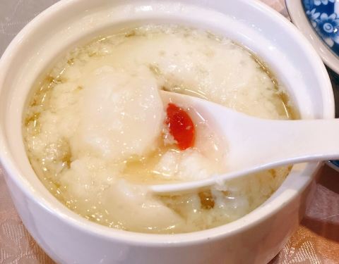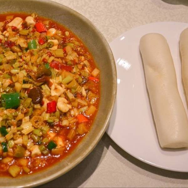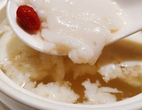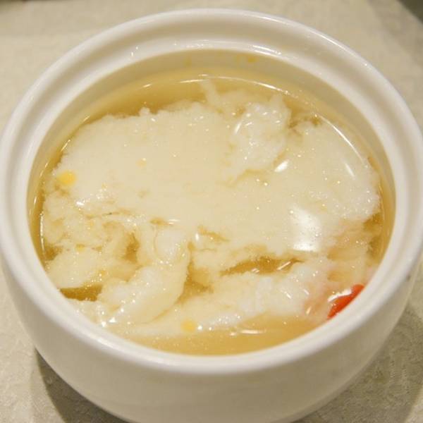 牛脊髓的吃法见过各式各样的,这里的牛脊髓似乎找到了最适合的拍档,发酵的松软有嚼劲的馒头,中间裹上牛脊髓,劲道软糯有弹性,入口饱含食物的幸福感爆棚,吃起来超满足。【鱼汤粗粮糯米 狮子 头】【张飞牙签牛肉】