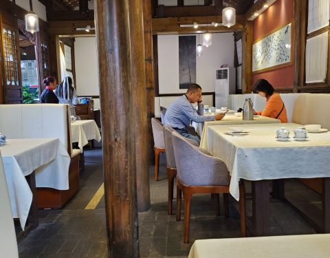 大概在10多二十年前,他家还在华西电信路附近的时候就开始光顾他家,对他家映像很好,后来搬了就不在了,好多年没有光顾后,今天到宽窄巷子看到他,午饭就定在他家了,价格现在有点小贵,没事,宽窄巷子原谅他,环境不错,古香古色的川西民居风格,吃饭喝茶很舒服。 菜品非常的失望,点了3个菜,2个菜差评,除了水煮牛肉还将就。点的坛子肉其实就是类似咸烧白,咸的根本不能入口,初粮南瓜,感觉不新鲜,非常的陈,里面的珍珠和小汤圆就是粉状,如果是是陈的,就只能说厨师手艺太差。 装修虽然不错,但是做的临窗的位置,沙发隔壁桌的一动。整个沙发都在晃,这个设施简直配不上装修。 要来的同学谨慎前往。