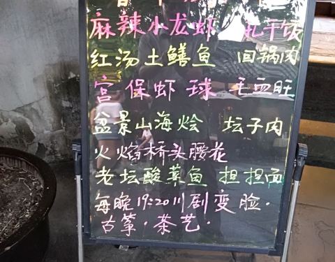这价格实惠,性价比很高。环境很好,老建筑院坝风格,还有古筝和变脸表演,请客很有面子。 菜品也很棒,选择多,摆盘漂亮,经典川菜和特色小吃都有,味道都挺正宗的。特别推荐宫辣子鸡丁,宫保虾仁,牦牛肉。