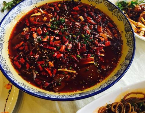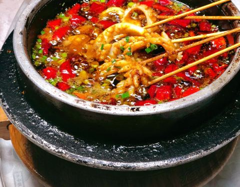 喝完盖碗茶,来一次川菜之旅 [环境] 位于景区内,小院里,别有一番味道 桌子挺大的,适合家人团聚 [服务] 阿姨们的服务还是挺好的 「鸭头」 我个人挺喜欢的一道菜,鸭头一分为二 盐味适中,微微带点辣,啃一个很香,停不下来的节奏。我觉得比某伟鸭脑壳好吃。 「传统鸡豆花」 一道菜看似简单,却很靠厨师手艺的菜 他家的鸡豆花比较嫩,口感不错 「招牌口水鸡」 凉拌菜,油辣子很重要,他家的红油还不错 鸡肉紧实入味。 「沸腾鱿鱼蛙」 这道菜好吃,鱿鱼穿在竹签上,麻辣鲜香 锅里的芋头真的很好吃,比起本地芋头更爽滑 蛙肉也很嫩 「硕果累累辣子鸡」 造型有意思,糖油果子无疑是成都小吃界必点菜 辣子鸡鸡肉炒的干香,很下饭。 老坛凤爪: 酸辣味十足,凤爪无腥味,口感紧实 最后来杯盖碗茶,坐在小院里,看看外面的游客,生活惬意。