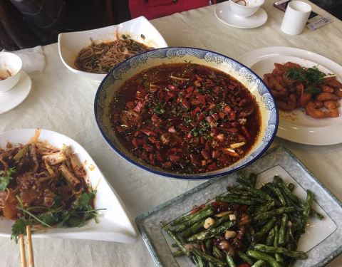 香积厨饭店位于宽窄巷子,门脸不是很大,但是,当你步入内场,发现别有洞天。院子很大,摆满了餐桌,桌上撑着打伞,遮阳挡雨。酸菜鱼很好吃。还有大辫子美女用长长的尖嘴壶冲泡大碗茶,非常有特色。