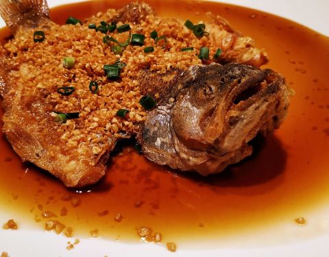 - 最值得推荐的还是这里的金牌蒜香鱼,整条裹上粉后被炸得金黄,口感酥脆,淋上酸甜可口的酱汁后,简直...