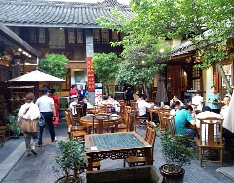 在宽窄巷子里面,地理位置很好,走进去一个小院儿,环境不错,有川剧表演。下午时间,喝喝盖碗茶挺舒服的,菜品都不错,毛血旺很好吃