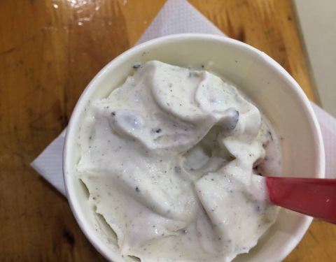 - 买了一个单球的甜筒,今年第一次吃,第一口下去有点甜腻,但是越吃越爽,口感还是很细腻的