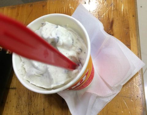 在新世界百货负一楼,一开始路过没发现,后来倒过来才看到就在屈臣氏旁边,电梯下来就是。 去的时候只有一个店员妹妹在,可能因为今天比较凉快,又是工作日,吃冰淇淋的人很少。 买了一个单球的甜筒,今年第一次吃,第一口下去有点甜腻,但是越吃越爽,口感还是很细腻的。 不晓得这两年DQ为啥少了好几家店,偶尔想吃一次都要跑好远才有哦,好久好久没有吃过暴风雪了,还有点想念那个味道。