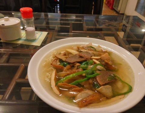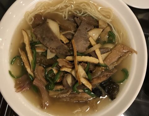 看着评论过来的,老板服务非常好,当他端着两份碟盘,一份牛杂,一份清汤面,当面用筷子将它们混在一起,又重新拿份筷子,这个细节上让人心暖,为老板的为人服务点赞。牛杂非常的劲道,用料十足,面条加在一起,真是美味极了,环境上古色古香,耳边想着丝竹之声,让人心境很容易轻松愉悦。看着这家店,真想到了曾经看的深夜食堂,绝对的有故事的,大隐隐于市,如老板这手艺在哪市中心,绝对客似云来,络绎不绝。或许知足者常乐吧,祝老板一家幸福美满。