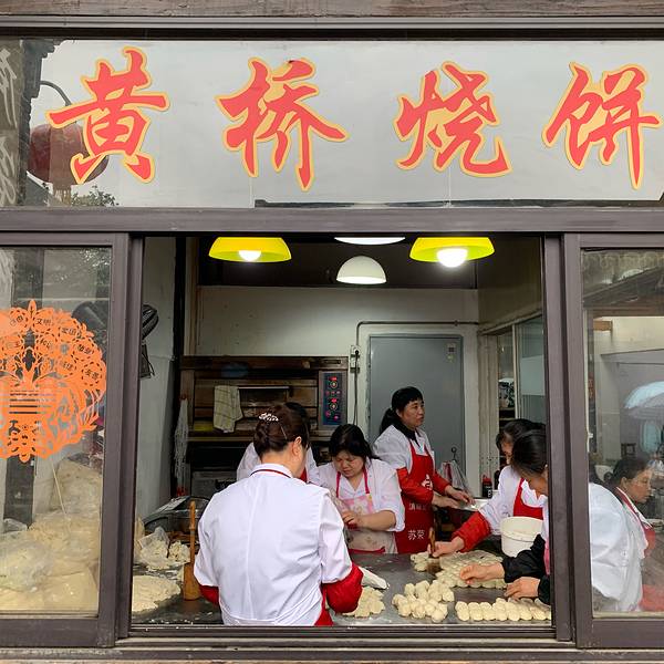 - 口味很棒,值得一试,一日三餐的时间都营业。黄桥烧饼有各种口味,包括茉莉花、桂花。外酥里嫩,价格实惠