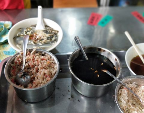 走了好多路肚子还不饿,就到这家随便吃点解决晚饭。点了烧饼、豆腐花和馄饨,前面两个都比较一般。酱油汤馄饨是第一次吃,馄饨个子类似上海的小馄饨。这汤看着很咸,其实倒也还好,吃到后面觉得还挺好吃的。