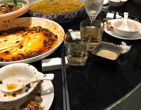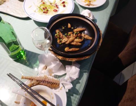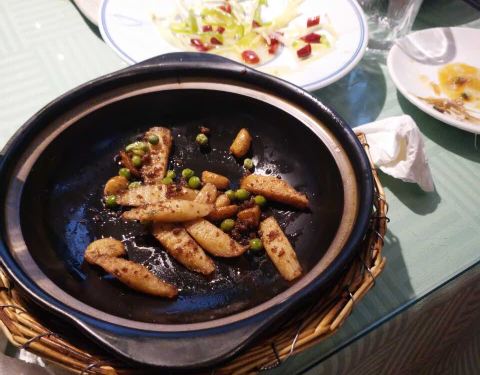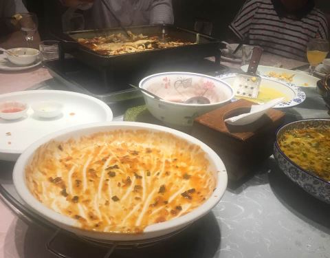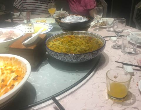 1、好像南京也有一家分店,不知是不是连锁,上次来扬州骑自行车顺便来吃吃看;2、也是以家常菜为主,菜单如下:葫芦鸡,拔丝红薯,飘香千丝肚,水煮黑鱼, 酸梅汤 ,黑鱼, 蒜香鲈鱼,梅菜扣肉,耗儿鱼,椒盐蘑菇,酸汤肥牛,醋溜山药,烤肉 ,烤生蚝,手切羊上脑 ,四喜下酒菜,凉粉炒花馍 ,肉馅豆角,田七苗,四季豆,脆皮肥肠;3、话说,田七苗倒是第一次吃,还可以,有机花菜干很特别,有嚼劲,也很入味,一锅鲜里面的蛋饺小小的,糯米肉圆油炸了一下还挺香的;4、总体好评。