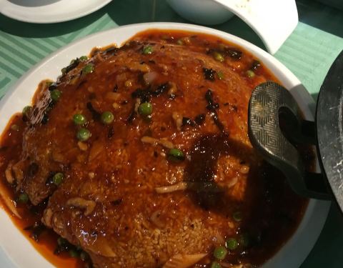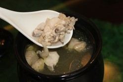 - ...还可以,有机花菜干很特别,有嚼劲,也很入味,一锅鲜里面的蛋饺小小的,糯米肉圆油炸了一下还挺香的