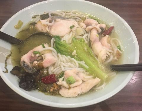 一大碗的黑鱼酸菜米线,看着就有胃口,马上开吃一下,酸辣味满足