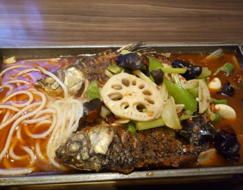 我和老公过来点了烤鱼和米线,口味么么哒。