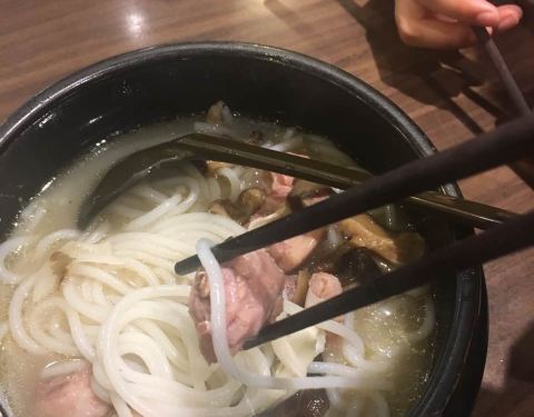 过桥米线第一次吃,每次都吃的牛杂米线,味道还不错哦!